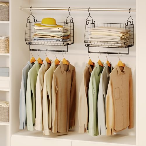 The inclusion of four hooks expands the organizer’s functionality, allowing users to hang accessories or frequently used items within easy reach. The wire hanging storage basket bins provide ventilation, keeping clothes fresh and preventing moisture buildup. Overall, this organizer helps streamline your closet, making it easier to find and maintain your belongings while optimizing your available space.
