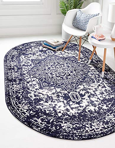 The Rugs.com Arlington Collection Rug – 5′ x 8′ Oval Navy Blue Medium-Pile Rug is ideal for homeowners and interior designers looking to enhance large living rooms, spacious dining areas, or open floorplans with a stylish yet functional floor covering. This rug is perfect for those who appreciate a combination of classic design and durable materials, aiming to add warmth and sophistication to their space while maintaining ease of maintenance.