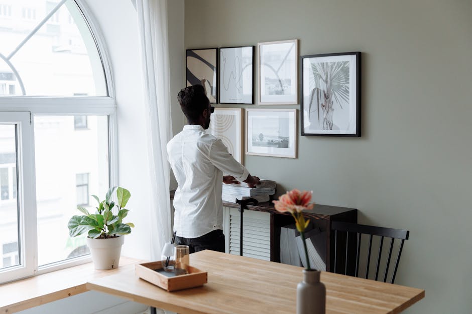 Choose artwork that complements your room’s colors but don’t hesitate to go bold—large pieces can make a small room feel more intentional and stylish. Hang frames in a vertical line or grid to maximize vertical impact.