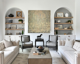 Think about how your coffee table, side tables, or shelving can either blend in or stand out just enough to catch the eye.