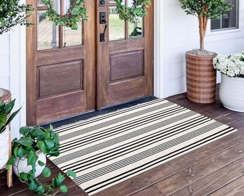 The Black and White Striped Outdoor Rug 24” x 51” by BUAGETUP is ideal for homeowners or renters who want to enhance their front porch, entryway, or bedroom with a stylish yet functional mat. If you appreciate a farmhouse aesthetic combined with practicality, this hand-woven and machine washable layered door mat offers a perfect blend of durability and design for outdoor and indoor use.
