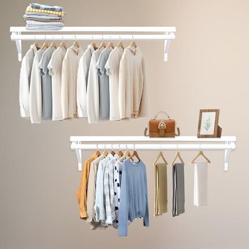 Qupui 2 Packs Closet Rack with Hanging Rod, 47.2in Wall Mounted Clothes Rack with Top Shelf, Walk in Clothing System, Heavy Duty Shelf Hanging Rod for Laundry Room, Closet Storage, Garage