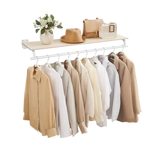 The TEDIDUWA Clothes Rack 36in features a sturdy wall-mounted design that frees up floor space while providing ample room to hang clothes. Its robust build supports heavy garments without bending or breaking, making it reliable for everyday use. The real wood shelf adds both charm and practicality, perfect for placing hats, folded sweaters, or decorative items, enhancing the overall organization of your space.